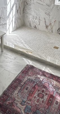 Beautiful rug, washable. The low pile feels and looks like an actual antique rug.