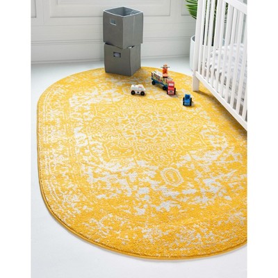 Unique Loom Maahru Collection Area Rug - Gibbous 5' 3" x 8' Oval Yellow Pink/Beige