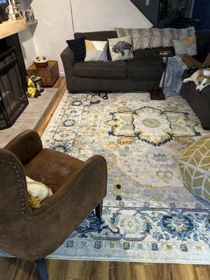 Inspired by the antique rugs found in French countryside manors, the Madeline Vintage Collection contains medallions, florals and other traditional patterns that are reimagined for modern times with a distinctive combination of over-dyed and distressed traditional design. Choose from richly saturated color in deep shades of antique blue and rust red or opt for lighter, pastel touches of color in shades of ivory, blue and gray. The Madeline Vintage collection is designed for multi-room placement. Easily furnish your entire home with this lovely collection available in a variety of shapes, including runner size, square, oval, round and traditional rectangle. Made with soft-to-the-touch polyester chenille material, the construction uses a machine woven power loomed design with a lush medium pile height. Although they may look fit for a palace, the Madeline Vintage Collection is made for the modern home and is built to be durable, kid-friendly and stain-resistant.