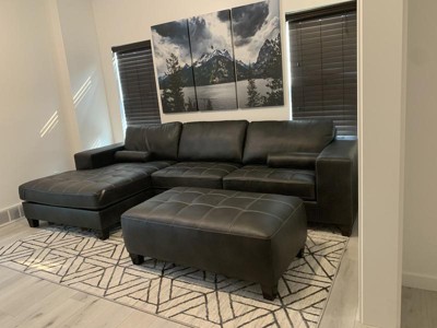 This rug is very soft and I love the modern pattern. My only (minor) complaint is that at certain angles the dark lines look green rather than grey.