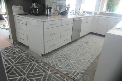 A: The rug is made from 100% polyester, providing durability and comfort.