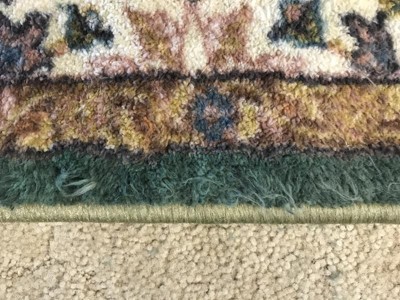 Started using this rug about a month ago after my new furniture arrived. I absolutely love the emerald color and the brown, gold and cream accent colors. The rug is very soft. The downside is, it sheds very badly. I would like to order a larger size to cover more floor area because it feels so good under your feet but it is already starting to show a lot of pulled threads and pieces of fuzz on the rug itself and tracked throughout my house. Not sure what the longevity will be so I hesitate to spend more on a bigger one.