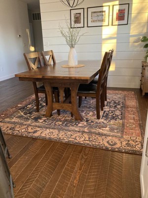I had been shopping online for a dining room rug for many hours. I had my heart set on a jute rug. Then I started playing with the "See this in my Room" feature and stumbled onto this rug. After "seeing" it in my room virtually I took a chance and ordered it and now I just love it! The colors are muted and lovely, the fibers are soft (not plush and "squishy" but just soft to the touch) and it just pulled together my entire open floor plan from living room to kitchen. Use the feature that allows you to upload your room picture! You may be surprised at what you end up liking!
