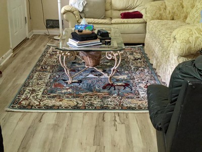 I was unsure of what style of rug to purchase and felt that the number of options were a little overwhelming but this one caught my eye and after reading the reviews I couldn’t get it out of my mind—so I took the plunge and so glad I did! It is unique, tells many stories, and has a lot of different shades which could complement many different decors. I love bohemian, eclectic looks so it fit right in and I like the fact that it is not really the type of rug that you’ll see in a lot of homes. It has an eastern charm with an element of elegance and mystique, the quality is excellent and although the colours are slightly darker than what is shown on the pics online, I think that is due to thee lighting and overall it is a fantastic addition to our home!