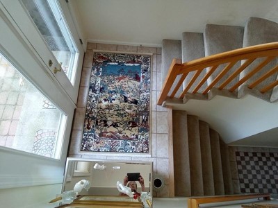 Besides this rug being well crafted it has so many figures and animals, flowers too. Horses with riders, A man playing the lute , another smoking a hookah. A couple and much more. I love the detail of the many animals like tigers, lions, rabbits etc. I would be interest in finding out the story of my new rug, I’m sure it’s a fascinating story!