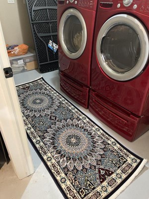 Purchased this runner after purchasing a matching oval rug for our hallway/foyer area. The runner is a perfect compliment to the rug. The runner did not take very long for the bumps to flatten but the corners still tend to curl slightly. I love the colors and the quality.