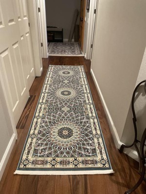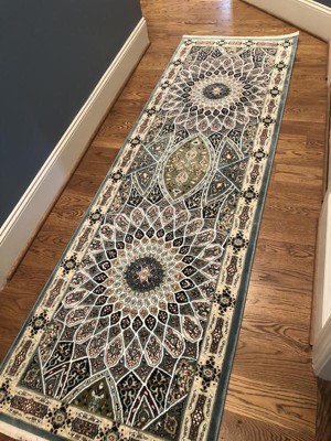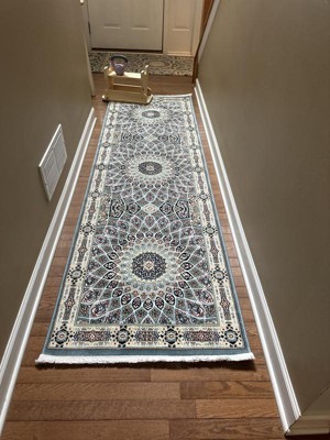 This rug was purchased as a runner in a hallway and it's design was much to bold and busy for the look I wanted to have so I sent it back.