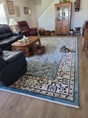 I am so thrilled with my Rabia rug! The colors are rich and pretty detailed nature patterns match up beautifully with my furniture and decor. It was hard to measure the room for the size needed, and it actually filled up my room more than I anticipated. It really feels good to walk on with the pad under it. It just pulled my room together. Very happy!