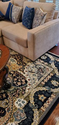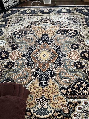 The rug is just gorgeous in my living room! The colors are rich and beautiful just as pictured! It feels so soft and luxurious underfoot! I’m so pleased! It matches my existing furniture and the new curtains I just bought! Totally changed the look of the room!