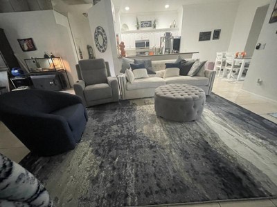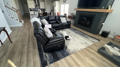 A: The rug is made from 100% polypropylene, ensuring durability and resistance to stains.