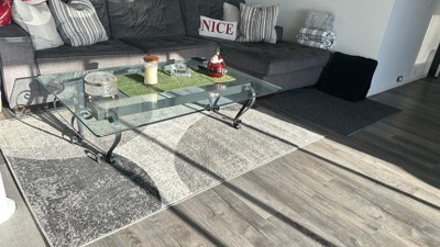 A: The rug is made from 100% polypropylene, ensuring durability and resistance to stains.