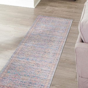 The classic look of traditional rugs gets a modern reinterpretation with the Nostalgia collection. Here, priceless styles sought after by collectors get reimagined for modern homes. Well-loved medallion shapes and traditional floral flourishes complement the rich yet muted tones of ivory and pink, beige and gray and antique blue. A combination of over-dyed and distressed shades gives each rug in the Nostalgia Collection a vintage look. The Nostalgia Collection makes multi-room placement a breeze with coordinating designs, each with its own personality. Made of soft polyester chenille, the machine woven, power loomed construction creates a durable flatweave design that's easy to care for. With a low pile height, it's easy to keep clean and also is completely machine washable, kid-friendly and stain-resistant.