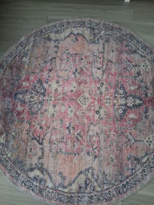 The classic look of traditional rugs gets a modern reinterpretation with the Nostalgia collection. Here, priceless styles sought after by collectors get reimagined for modern homes. Well-loved medallion shapes and traditional floral flourishes complement the rich yet muted tones of ivory and pink, beige and gray and antique blue. A combination of over-dyed and distressed shades gives each rug in the Nostalgia Collection a vintage look. The Nostalgia Collection makes multi-room placement a breeze with coordinating designs, each with its own personality. Made of soft polyester chenille, the machine woven, power loomed construction creates a durable flatweave design that's easy to care for. With a low pile height, it's easy to keep clean and also is completely machine washable, kid-friendly and stain-resistant.