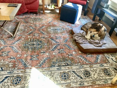 This is my third rug from this retailer, and it’s definitely the thinnest of them all, but it’s the exact colors I was looking for and an attractive motif, so I’m keeping it. I’ll just buy a thicker pad for it.