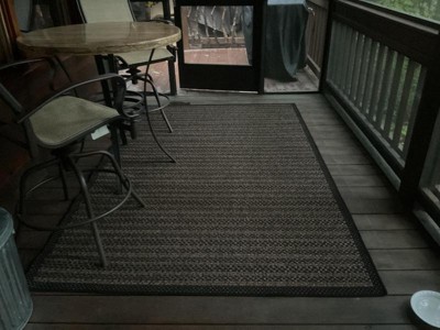 A: The rug is stain-resistant and designed to withstand outdoor conditions.
