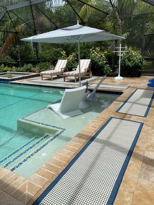We love these runners around our pool edge. They help prevent slippery falls, especially with little ones. They dry quickly and are not fading. They are holding up really well. Would definitely recommend!