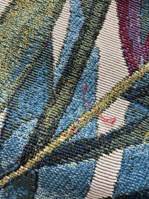 A: The rug features a flat pile, making it suitable for seamless placement under furniture.