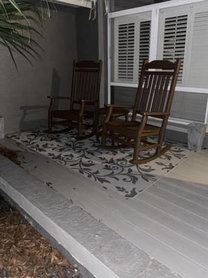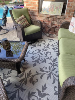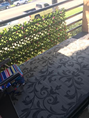 A: Yes, its flat-weave pile allows for seamless placement underneath furniture both indoors and outdoors.
