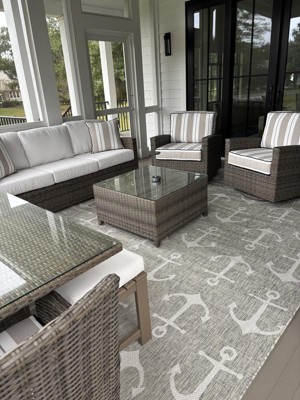 A: Yes, its flat-weave pile allows for seamless placement under furniture both indoors and outdoors.