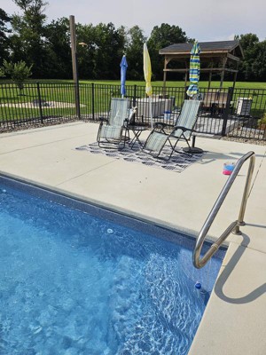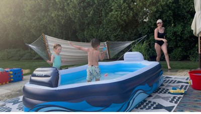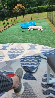 A: Yes, its flat-weave pile allows for seamless placement under furniture both indoors and outdoors.