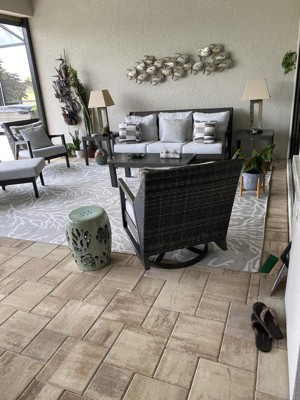 I purchased the 4’ x 6’ Coastal Indoor/Outdoor Rug a few weeks after having purchased a 10’ x 14’ size and seeing how happy I was with this product on my lanai. The lanai looks so much more “pulled together” and the light color really opens and brightens the space. I highly recommend this rug.