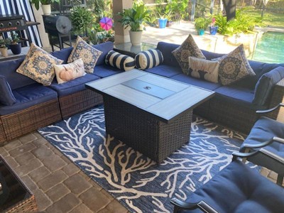 We love our new outdoor rug. It fits perfectly on the bridge of our new boat.