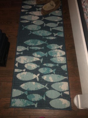 Unique Loom 2' 0 x 8' 0 Runner Blue Outdoor Coastal Plenty of Fish Area Rug