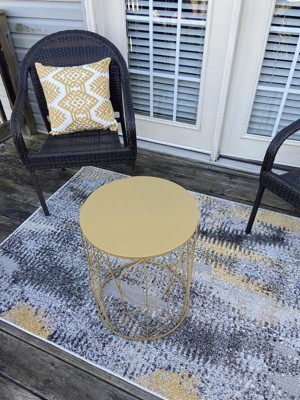 A: Yes, its flat-weave pile allows for seamless placement underneath furniture both indoors and outdoors.
