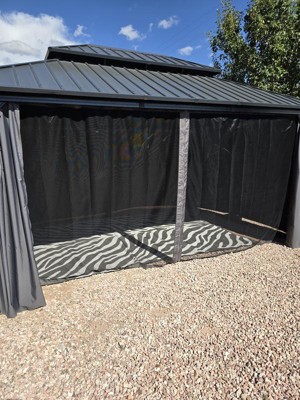 A: Yes, its flat-weave pile allows for seamless placement underneath furniture both indoors and outdoors.