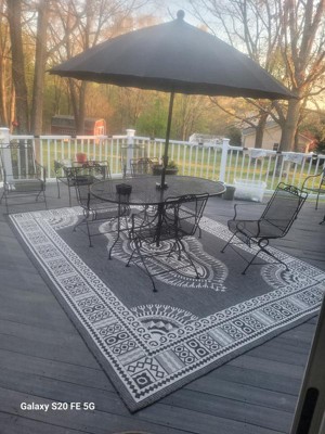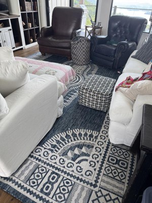A: Yes, its flat-weave pile allows for seamless placement underneath furniture both indoors and outdoors.