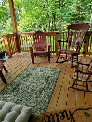 A: Yes, its flat-weave pile allows for seamless placement underneath furniture both indoors and outdoors.