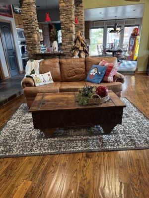 A: The rug features an elevated design that enhances and transforms entertaining spaces.