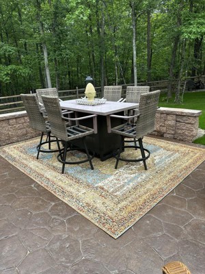 A: Yes, the rug is versatile and can be used both indoors and outdoors.