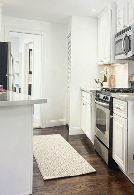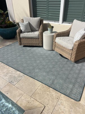 A: Yes, its flat-weave pile allows for seamless placement underneath furniture both indoors and outdoors.