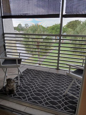 A: Yes, its flat-weave pile allows for seamless placement under furniture both indoors and outdoors.