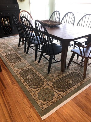 Rug is better then I thought , colors are great , green is a light sage goes beautifully with the cream and brown