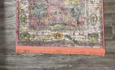 This rug is very vibrant in the colors and the tassels give it additional pop of pink. It has held up in a high traffic area well and is made well