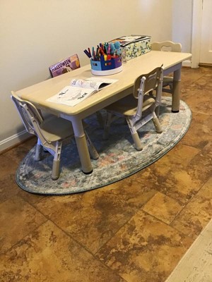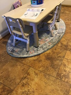 A: The rug is made from 100% polypropylene, ensuring durability and stain resistance.