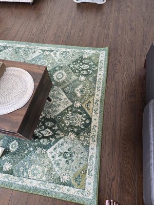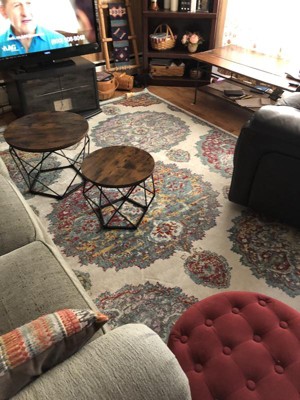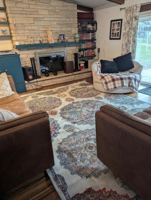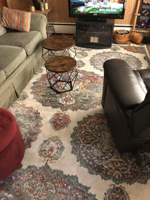 A: The rug is made from 100% polypropylene, ensuring durability and stain resistance.