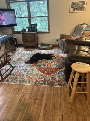 A: The rug is made from 100% polypropylene, ensuring durability and stain resistance.
