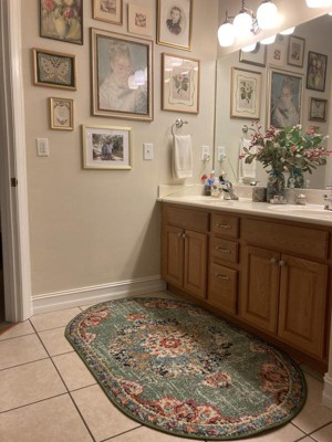 This rug is perfect for my bathroom. It is beautiful and useful as well. Thank you. I 100% recommend this rug. Mine is lite green and very nice.