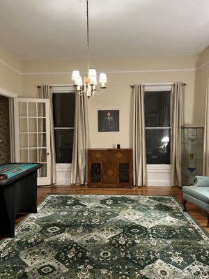 This rug is so beautiful. Well made multiple shades of greens make it look and feel rich. Great Value too!