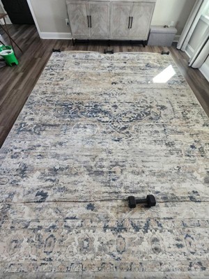 The picture looks like there are hints of blue in the rug (as described). There are absolutely no hints of blue anywhere in the rug I received and so I returned it.