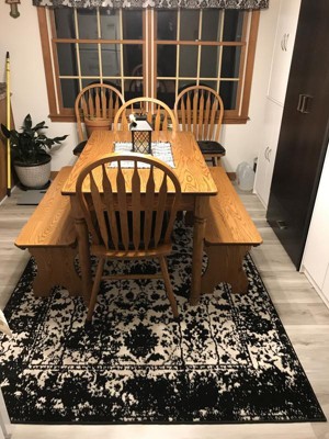 I love this rug! Perfect with my new dining room furniture!!! It took a few days for it to settle and lay flat but once it did it was perfect!! Great quality too!