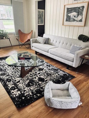 What a gorgeous addition to ou space! This rug really ties the whole space together beautifully.
