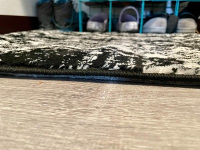 Thin and crumply—doesn’t want to lay flat, even on a pad, so I have it under something heavy to help it stay down. Works for under our shoe rack, but I wouldn’t use it on its own for fear of tripping people.