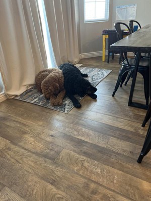 Perfect for the back door! Hoping the rug will hide dirt from the pups this winter