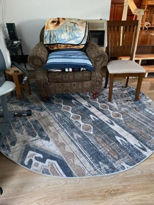 We got this rug for our dining room when we moved. We have a blue couch in the living room, and with the open floor plan we needed something that would play well with the colors. We had a much bolder and brighter rug before but this was a great replacement. The pattern even makes the space look wider. The delivery was quick. It did come folded and took a week or so for the creases to flatten out. We also got a rug pad to make it more plush. Great quality and highly recommended.