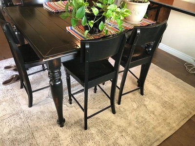I am very pleased with my purchase of this rug, it is a very thin rug, but that is ok with me as I have it over my carpeting & under my dinning room table..I don’t have a rug pad under it, but you probably would need one if on your hardwood floors. It is a nice change from the rug it is replacing. Very neutral in color! You won’t be disappointed in this one!