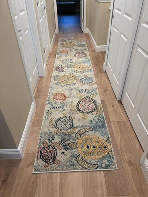 I LOVE this rug so much that I ordered another for our second home. The color goes with almost everything. We also have a round one with the same color scheme. We are scuba divers and turtles are a favorite.